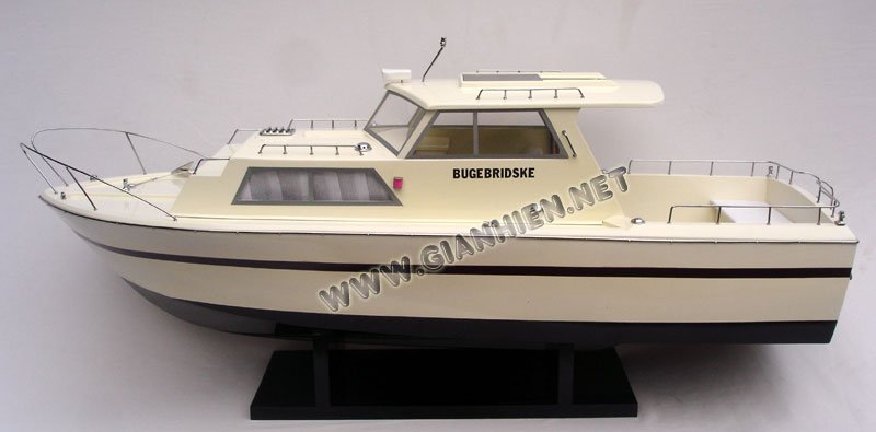 Model is hand-crafted from hard wood with planks on frame construction and then painted as the real boat. The metal fittings are brass chromed. Our model is fully assembled and ready for display.