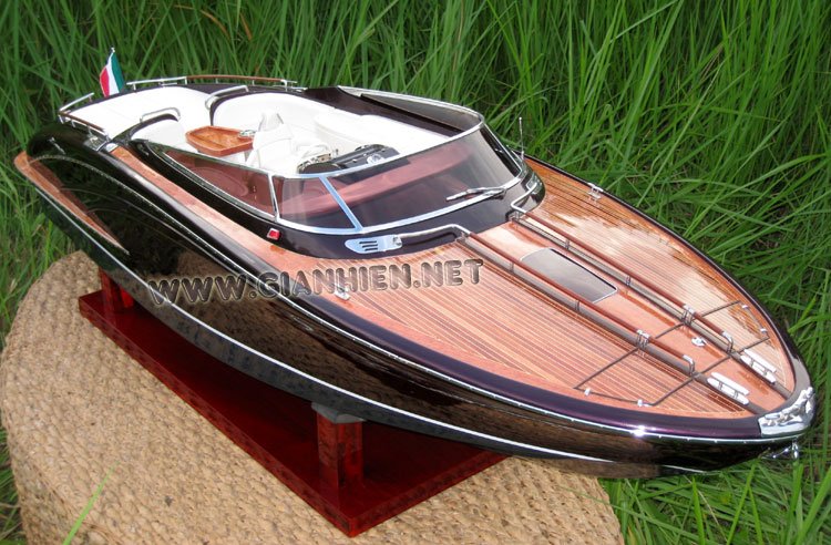 Model is hand-crafted from hard wood with planks on frame construction and the painted as the real boat. The metal fittings are brass chromed. Our model is fully assembled and ready for display.