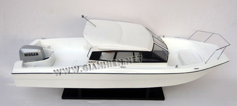 Model is hand-crafted from hard wood with planks on frame construction and then painted as the real boat. There are no plastic on the model. The metal fittings are brass chromed. Our model is fully assembled and ready for display.